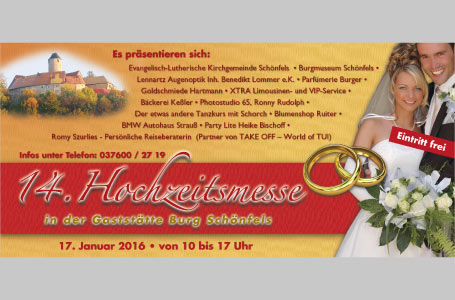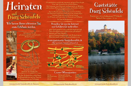 Flyer für die Hochzeitsmesse der Gaststätte Burg Schönfels.