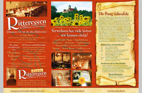 Außenseite des Hausprospekts (Wickelfalz) für die Gaststätte Burg Schönfels.