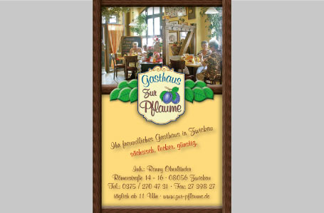 Visitenkarte für das Gasthaus zur Pflaume in Zwickau.
